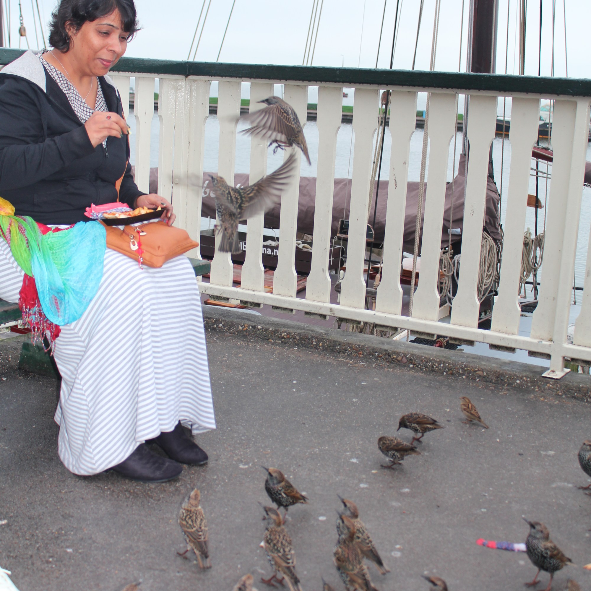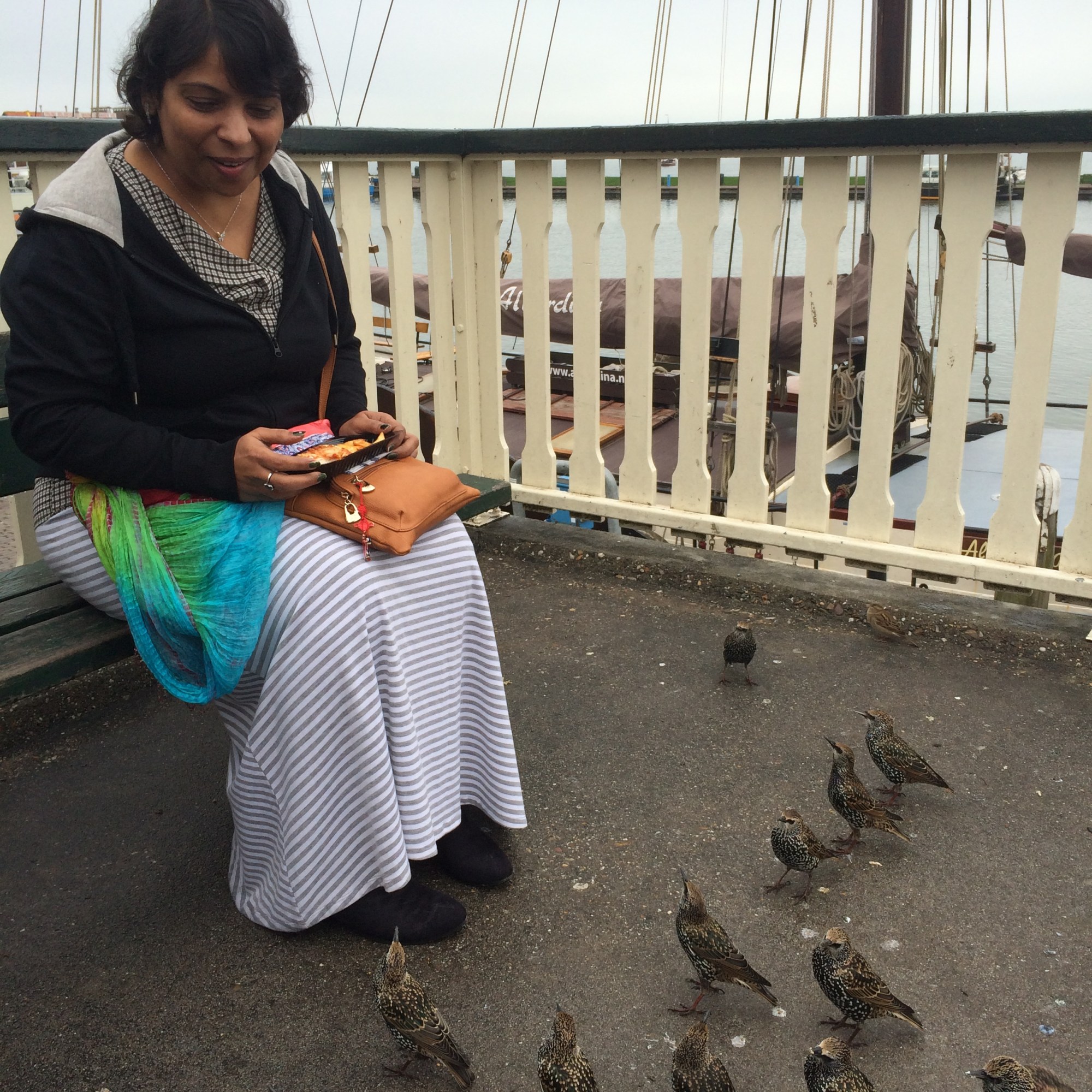 The next day started with a drizzle making the weather cool and the city more beautiful. We had taken a programmed tour of the Dutch country side which started early morning and headed to show us the Windmills, Volendam and Marken. Seeing the 400 year old windmills is a different experience but the effort their government is putting in conserving the heritage was worth an applause. We also met a miller named zuke who gave us a demo of the machinery of the windmill. The place is so scenic that one can fall in love over and over again. Next stop was volendam where we saw cheese factory, a very professional demonstration of cheese making and cheese tasting. Also a group of birds asking for food and efficiently making sure to have it their way.