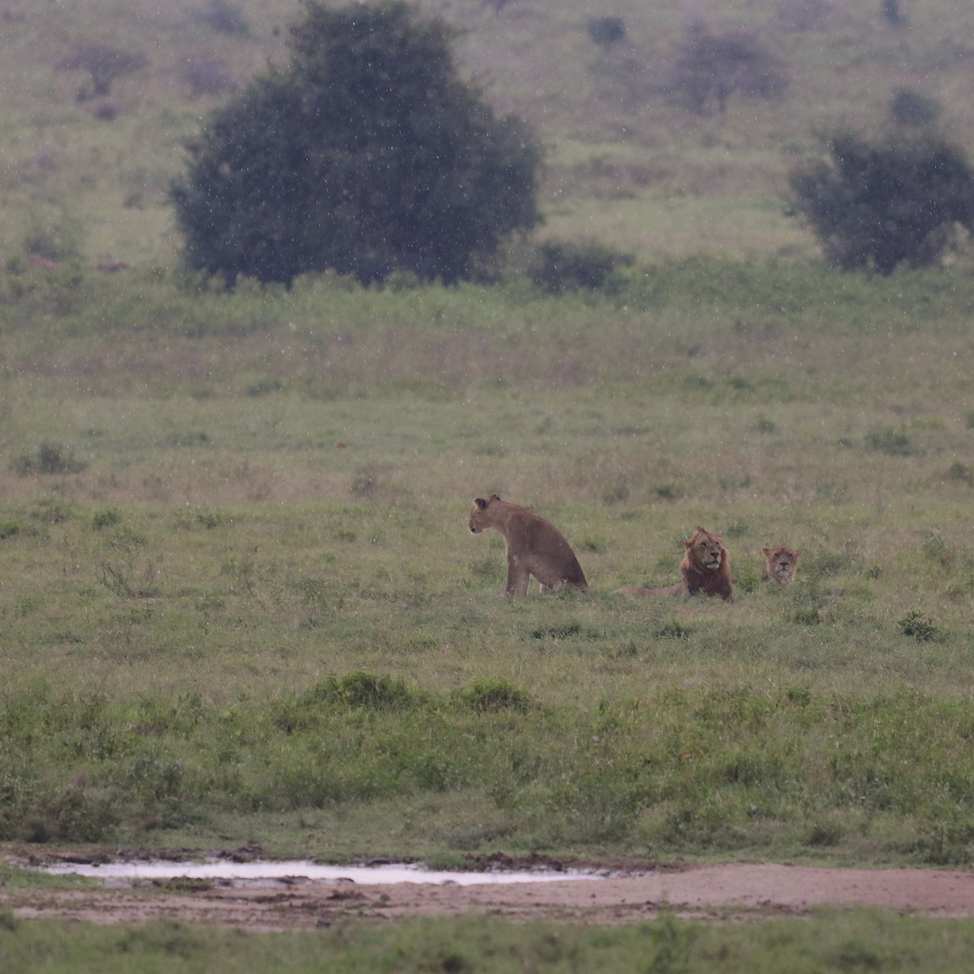 As we moved further towards the lodge the weather quickly changed and it started raining. Down the hill we saw a lot of vehicles lined up seeing something. There were a few lions waiting to see if they can catch a single grazing water buffalo. I guess due to lack of some of the members of the pride and rains they decided not to make the chase.