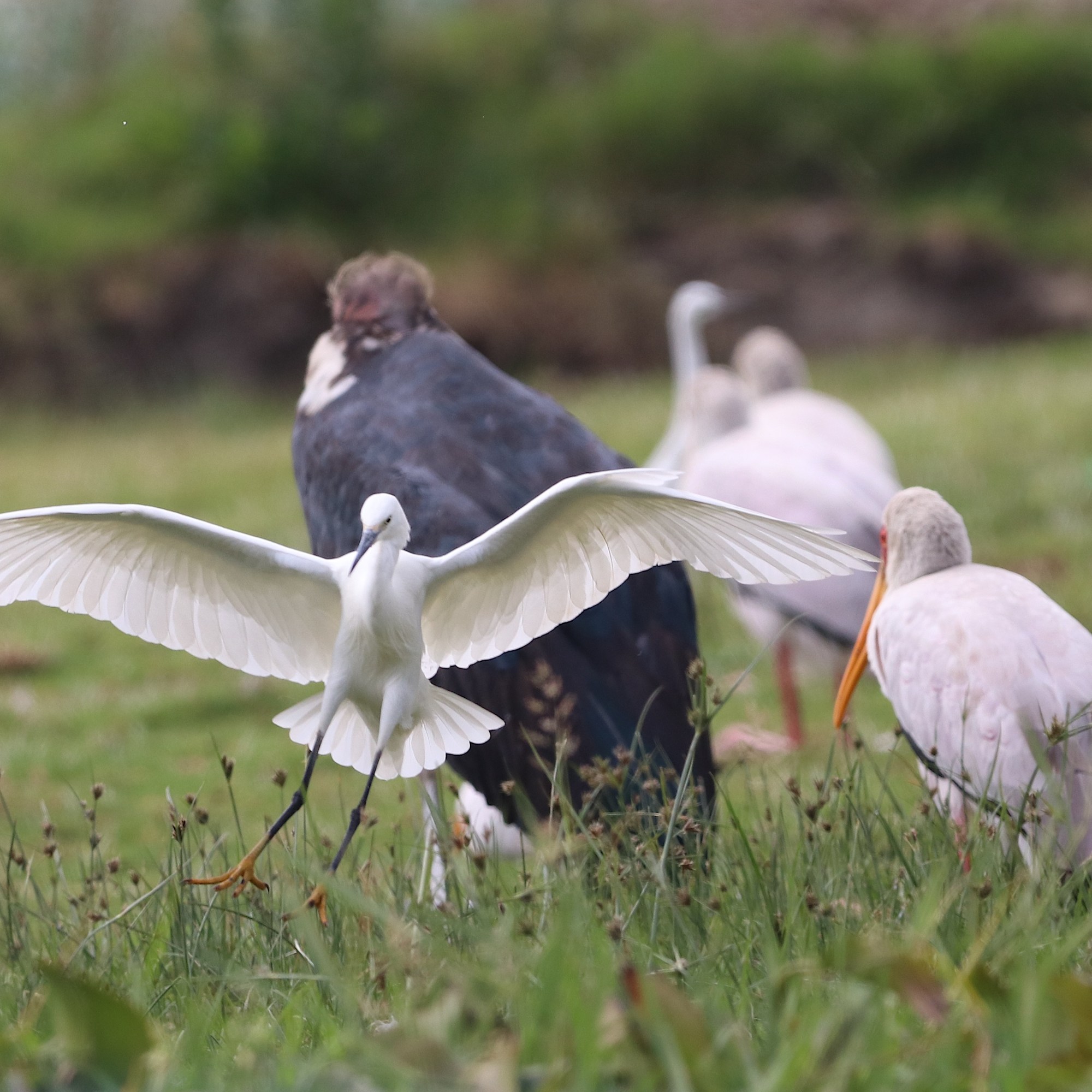 Since the park fees was paid by the tour operator in advance we quickly got through the Nderit Gate. As we entered the gate I was greeted by a Secretary Bird (famous for killing snakes by stomping them through it’s long legs flying across and it settled in it’s nest on the right side of the vehicle to feed the only chick in the nest. Got a beautiful picture of it feeding the chick which was almost fully grown.
