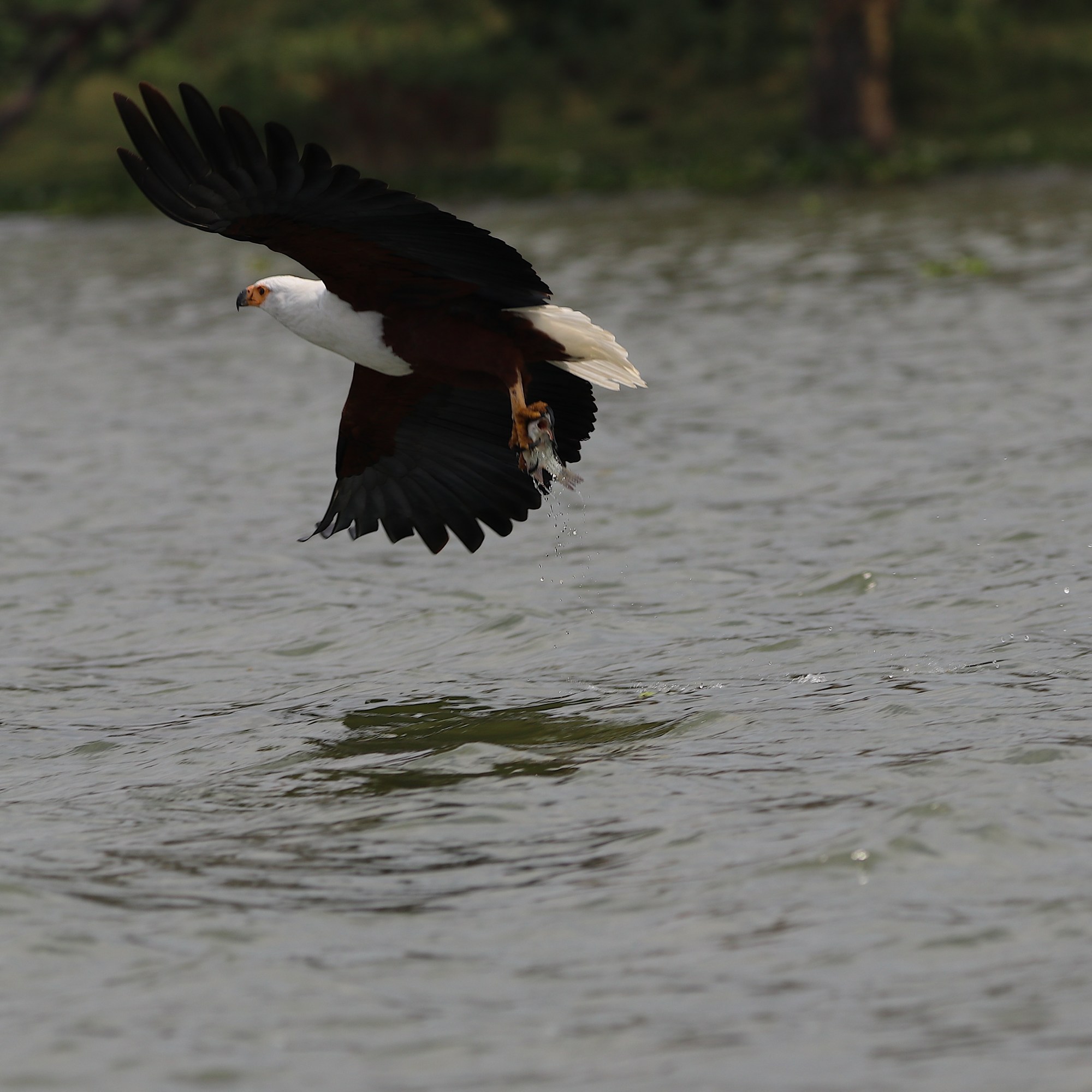 I got to see some magnificent birds, up close encounters with Hippos, and the marvelous pictures of the fishing eagles and the Pied Kingfishers catching fish from the lake. It was a breathtaking experience to see the eagles dive from top of the tree where they nest to catch the fish. The pictures turned out to be amazing and I had a big smile.