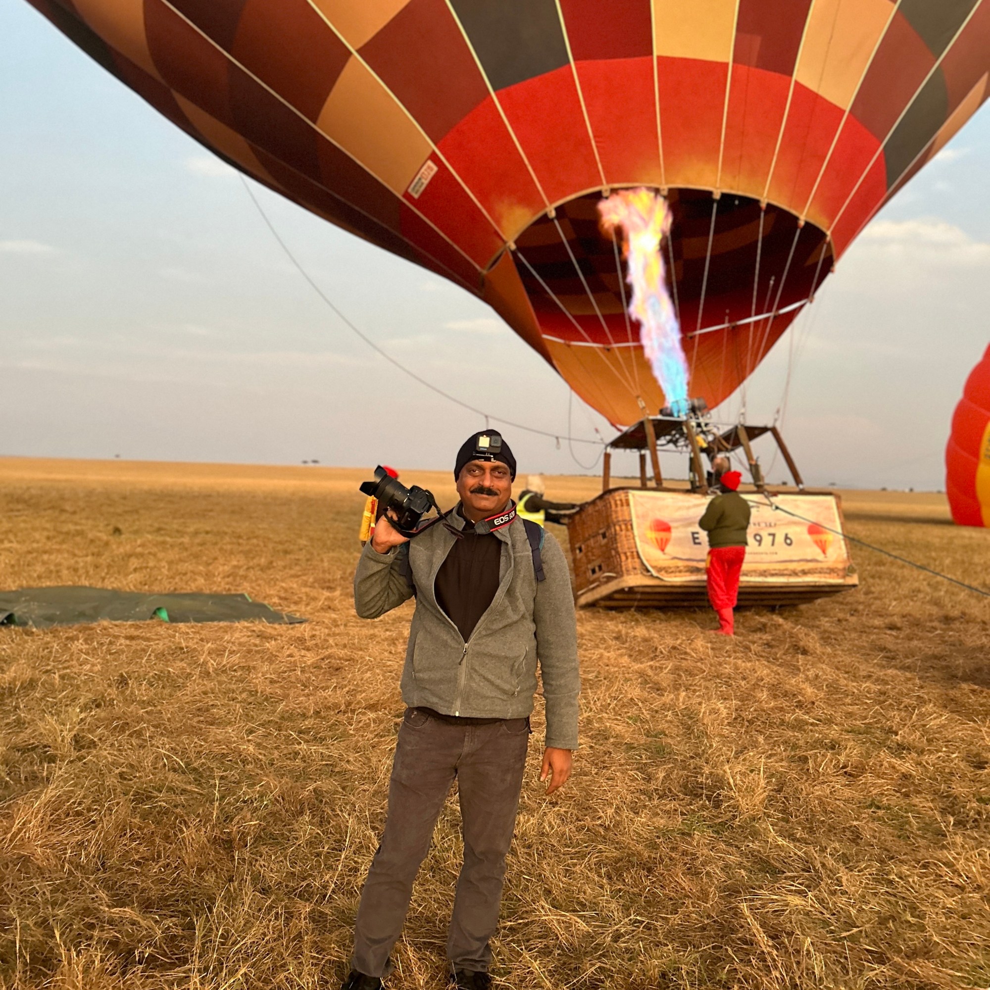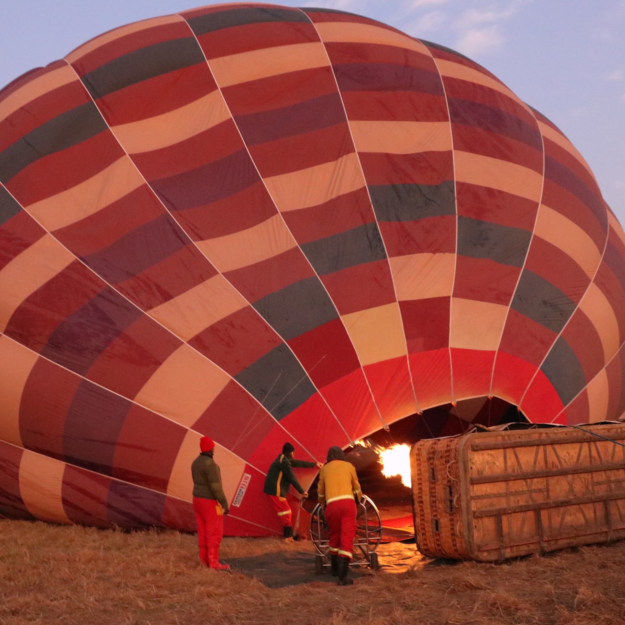 With an early start today woke up at 4AM to embark on a once in lifetime kind of experience in a hot air balloon ride over the Mara plains. I was picked up by the ride operators “Ballon Safaris” at 5AM. The site was a about 30 mins from my resort and I enjoyed a VIP treatment through a open jeep sent to pick just me. On arrival at the site it was still pitch dark and they were filling the balloons with hot air. Soon after registration the captain Mr Spencer met us and briefed us on the flight norms, what to expect, how to climb in the basket and grouped the 10 people in the 4 chambers of the basket. I was paired up in the front seat with a sweet British lady traveling with her friends who were in the next cubicle.