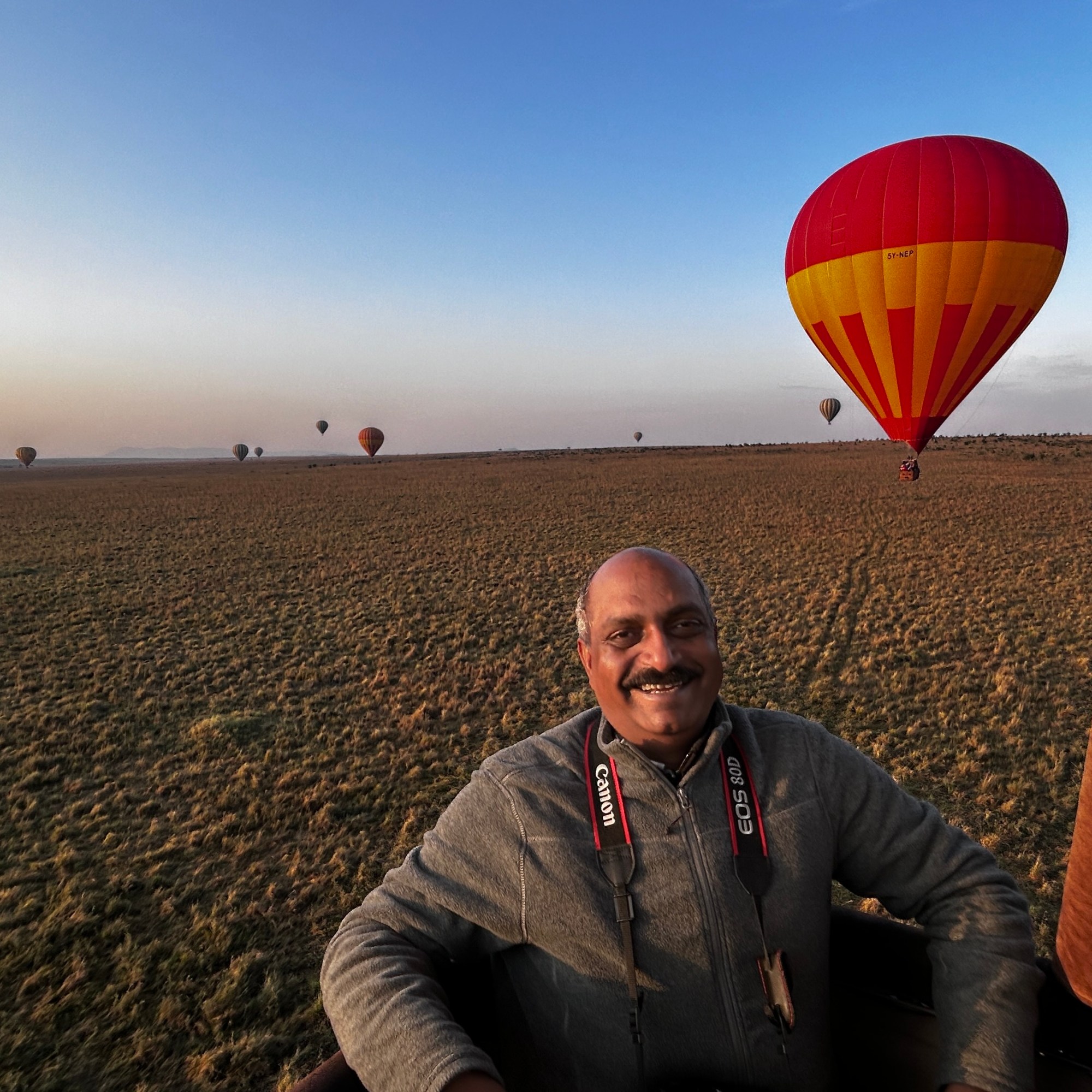 The pilot who is a Britisher is retired from his main job, does this pass time 4 months every year. Dream Job.. 😃. Pilot told us the history of the balloon rides over, how they started about 30 years ago and a lot of the things about the animals of Mara. He even did a 360 deg turn of the balloon so that everyone could get the sunrise pictures and see all around.