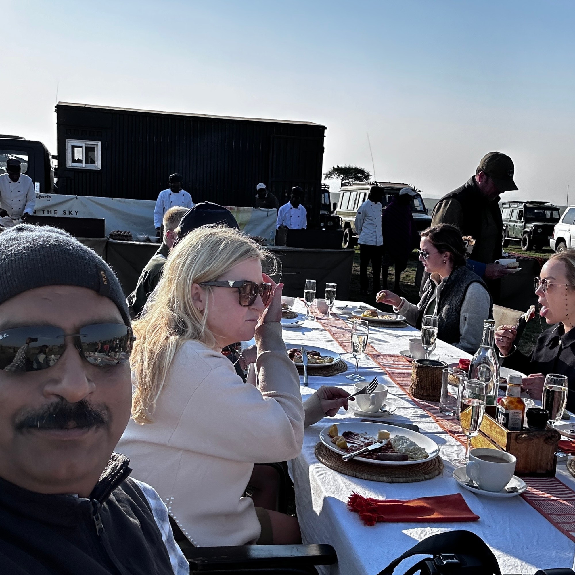 Took some group pictures after landing called locally as “Survivors Of Mara Balloon Ride”. The vehicles took us then to the breakfast site for a hot “Breakfast in the Bush”.