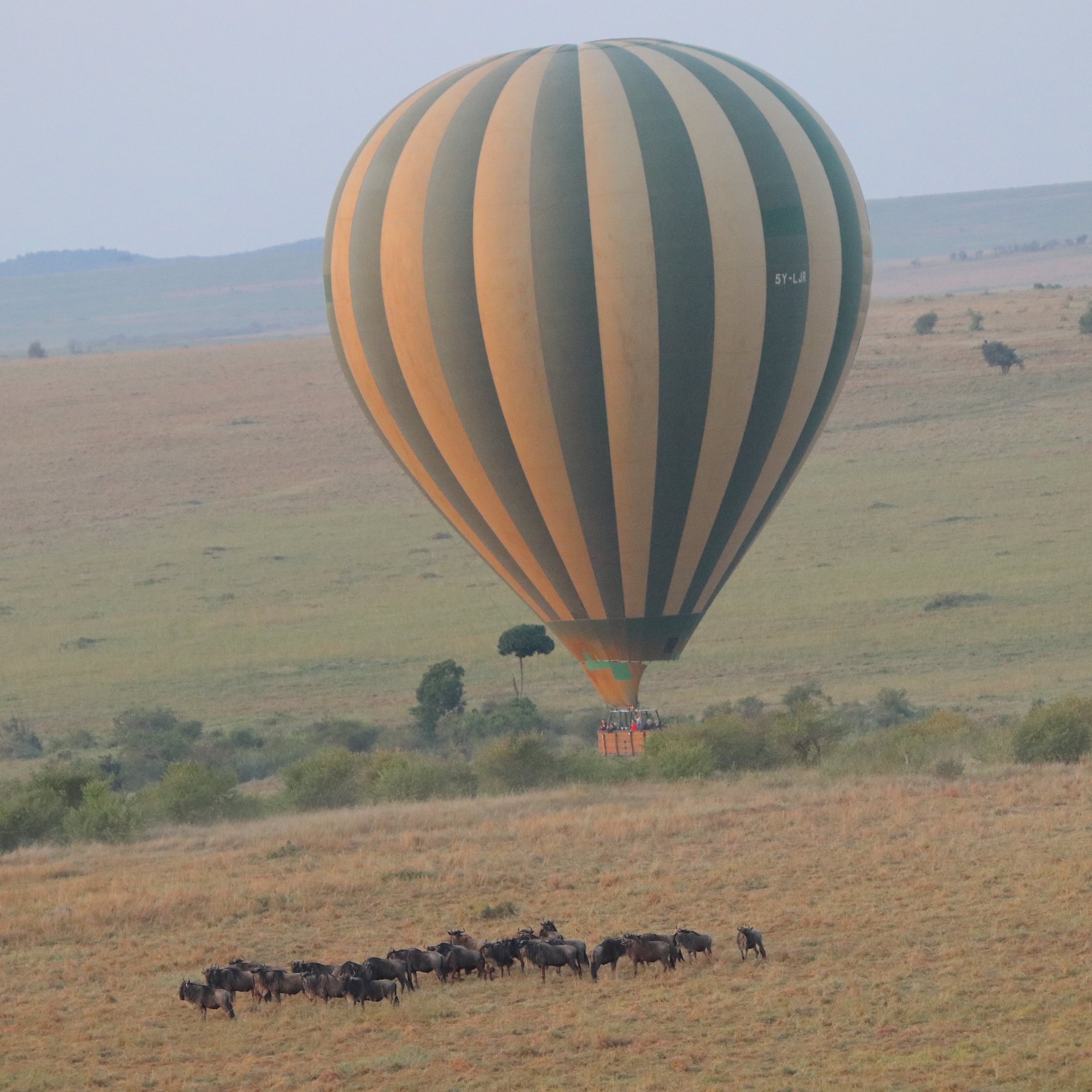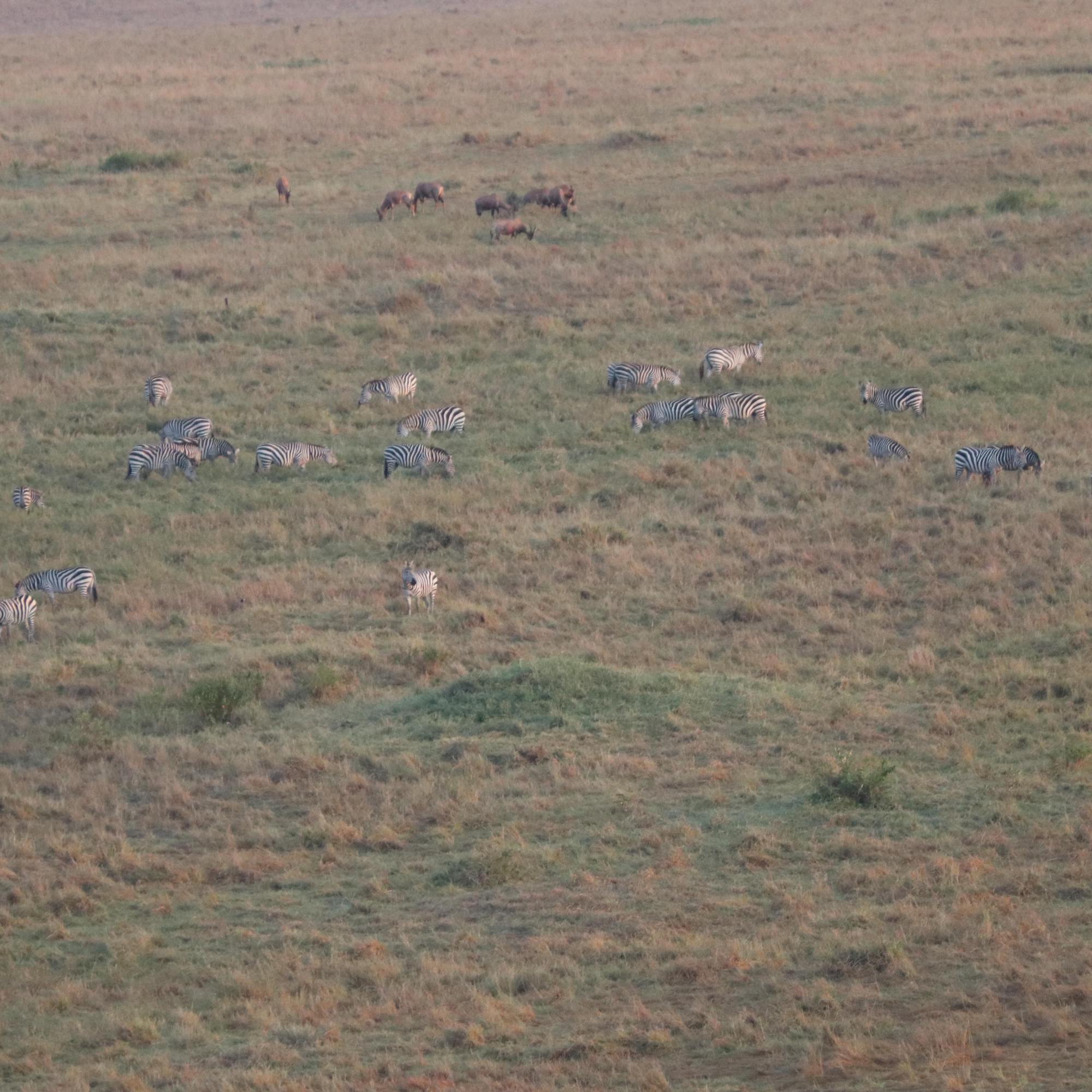 Flying low at about 50 ft and high about 1200 ft above the ground we saw a lot of Zebras, Antelopes, Topi, heard of elephants, and a few Hyenas running across the Mara.