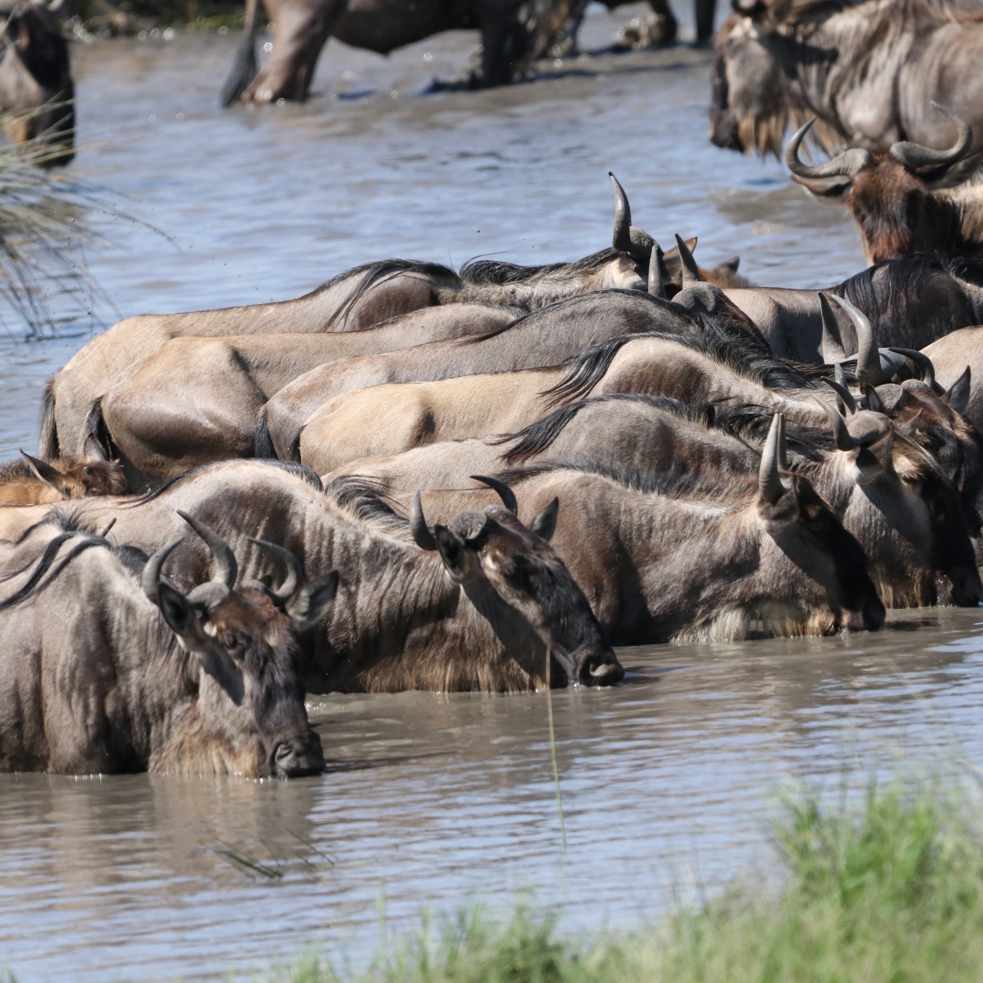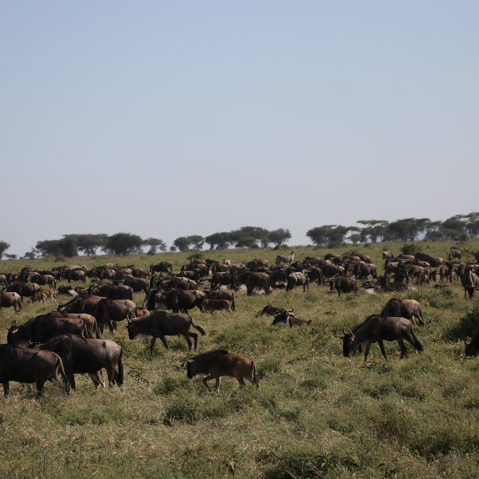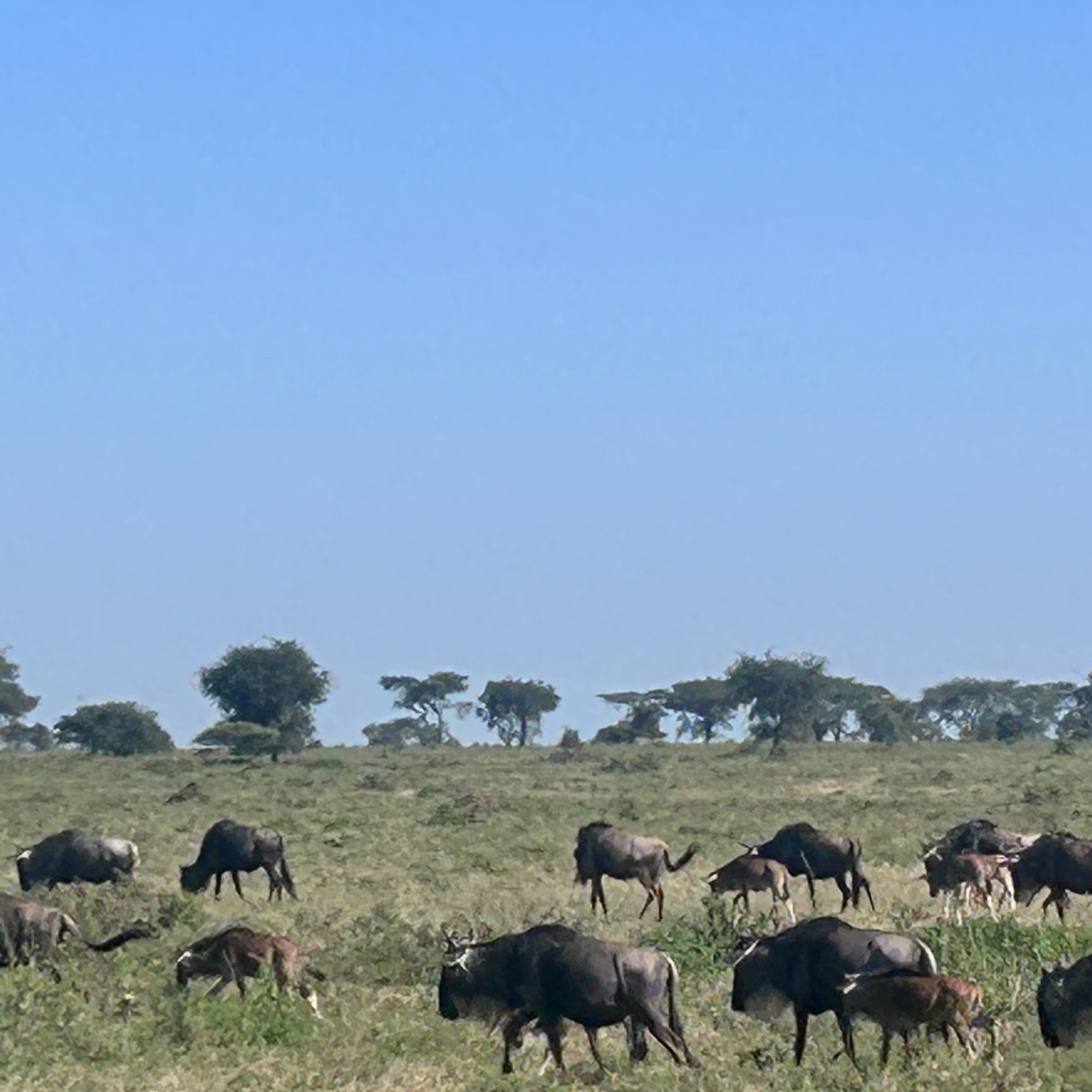 We were right in the middle of the large herd of Wildebeests, surrounded by the soft grunts of the calves trailing next to or behind their mothers. It was an awesome experience as the birthing season with its raw emotion and breathtaking sights, showcased the incredible cycle of life in this untamed land.