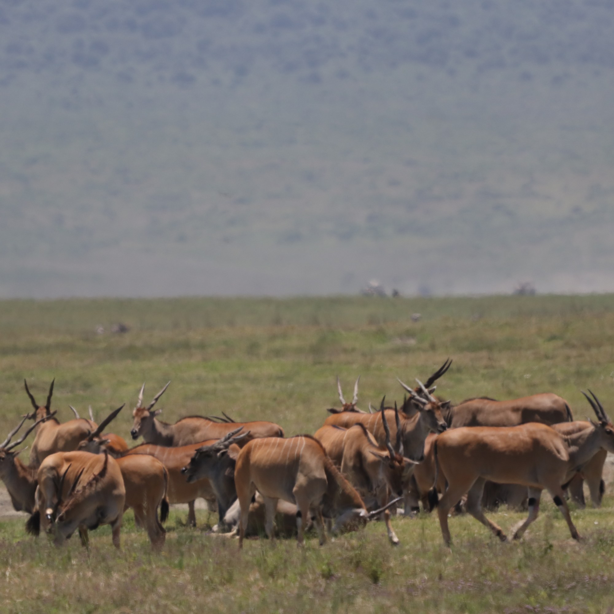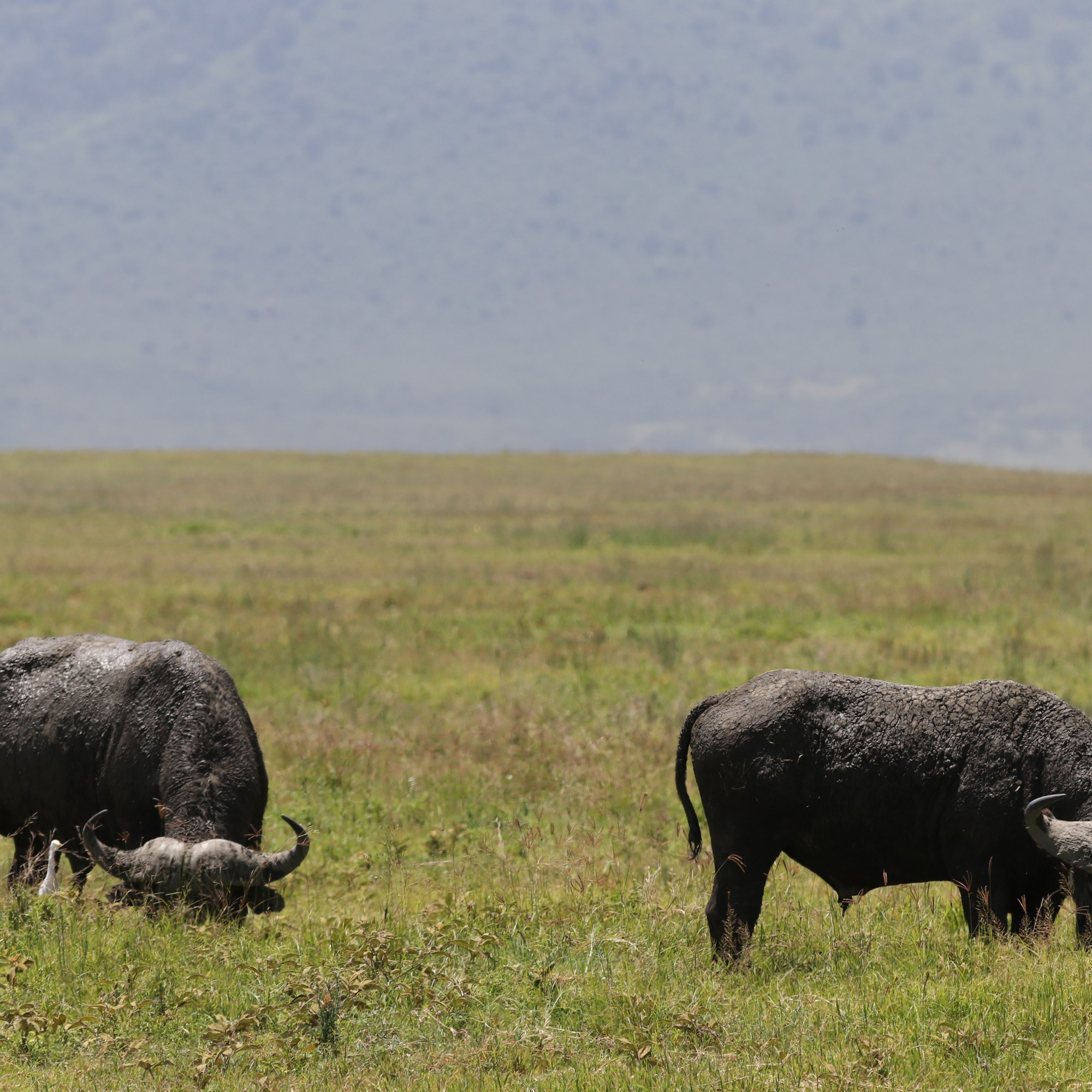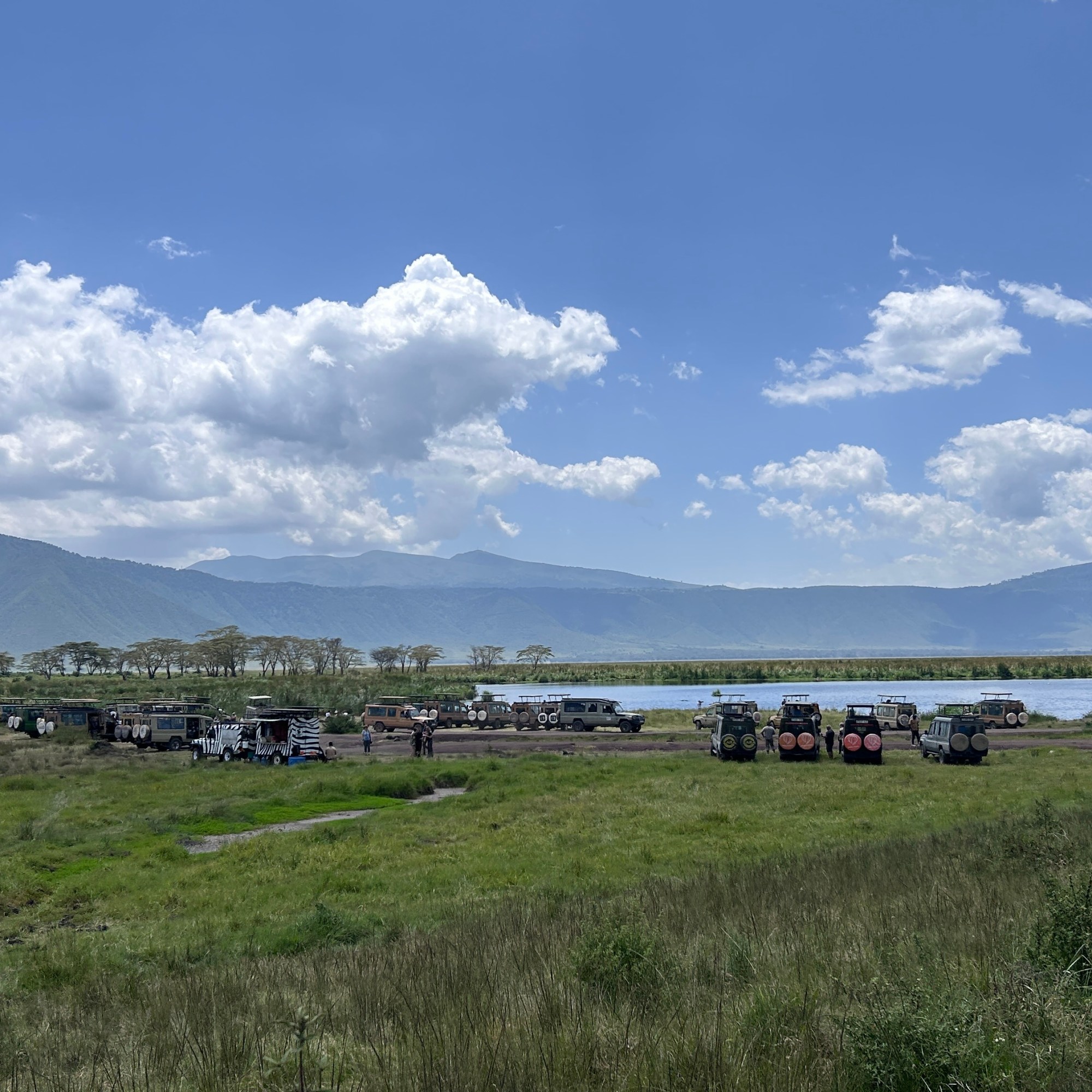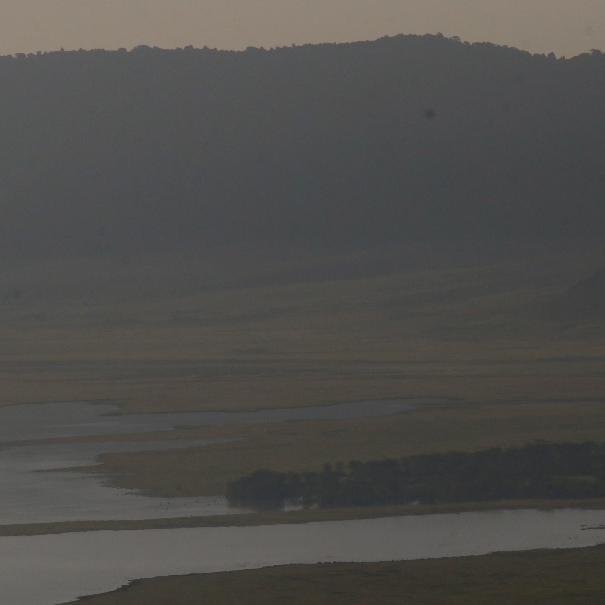 Before us, the vast caldera stretched out in quiet majesty, bathed in the golden hues of the setting sun. Long shadows draped across the land, accentuating the rolling plains, the shimmering lake, and the endless herds that called this place home. It was a sight that felt both timeless and fleeting, a moment that I wished I could hold onto forever.