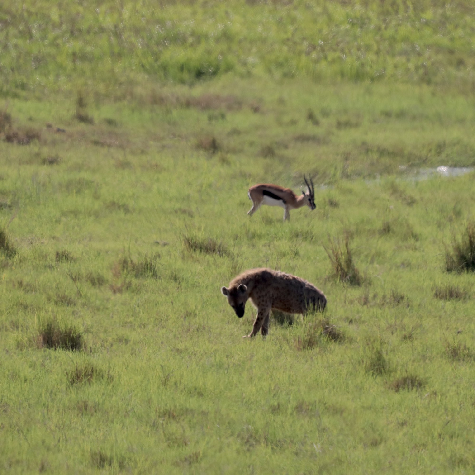 We saw a pair of African Cape buffaloes grazing and few cooling down in the mud pool, more pumbas digging for roots, and then there was the rare sight of the golden jackals. The female and male seems to doing a mating ritual as the female lay down in submission. There were also a heard of the elands standing tall against the grasslands.