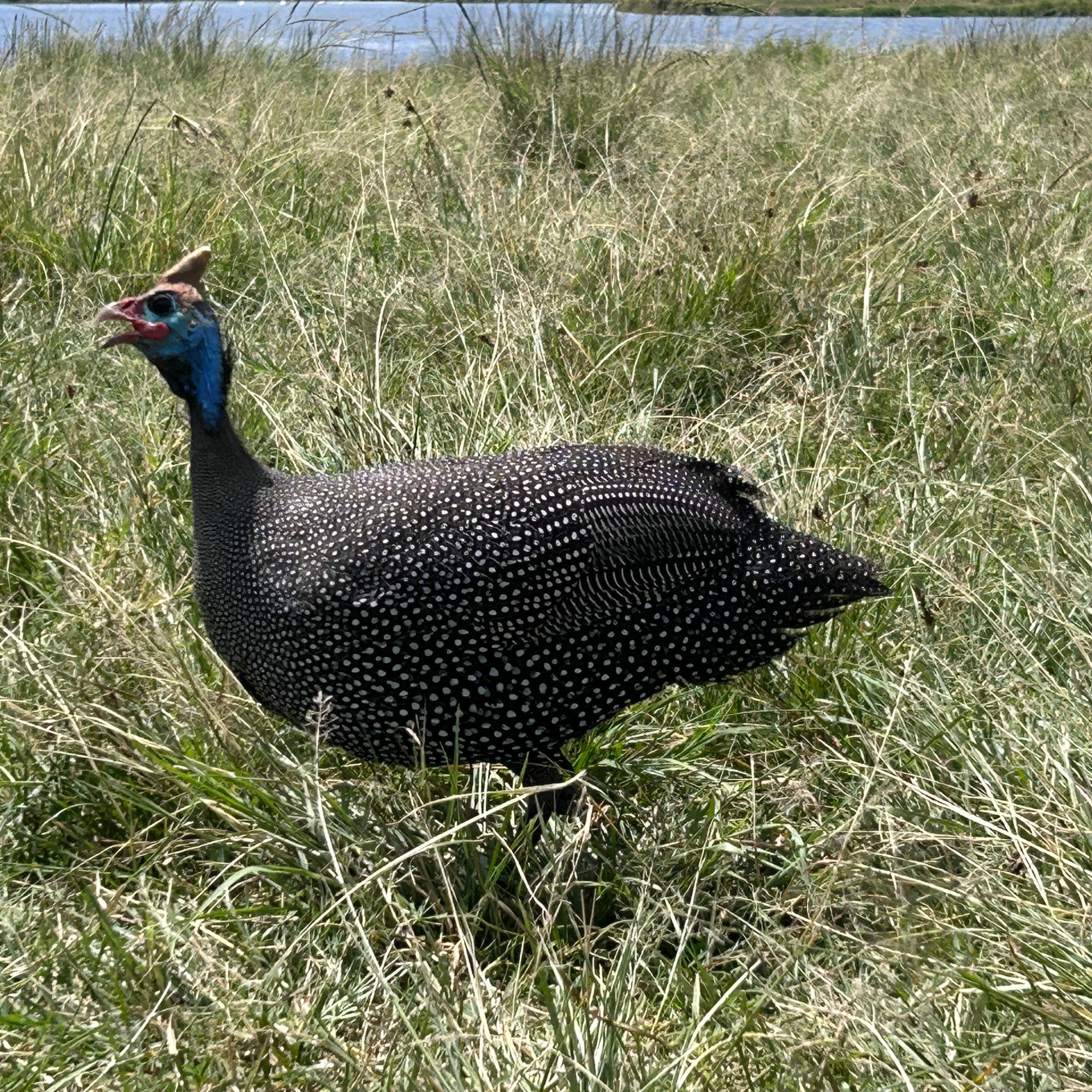 With our spirits soaring and our stomachs grumbling, we made our way to the picnic site, a serene haven adorned with benches arranged along a playful hippo pool. As we settled down to enjoy a well deserved meal, the area buzzed with life: the Marabou stork and helmeted guinea fowl darted around in search of morsels, while a large congregation of golden weaver birds, nestled high in the trees, added a vibrant splash of color to the scene.