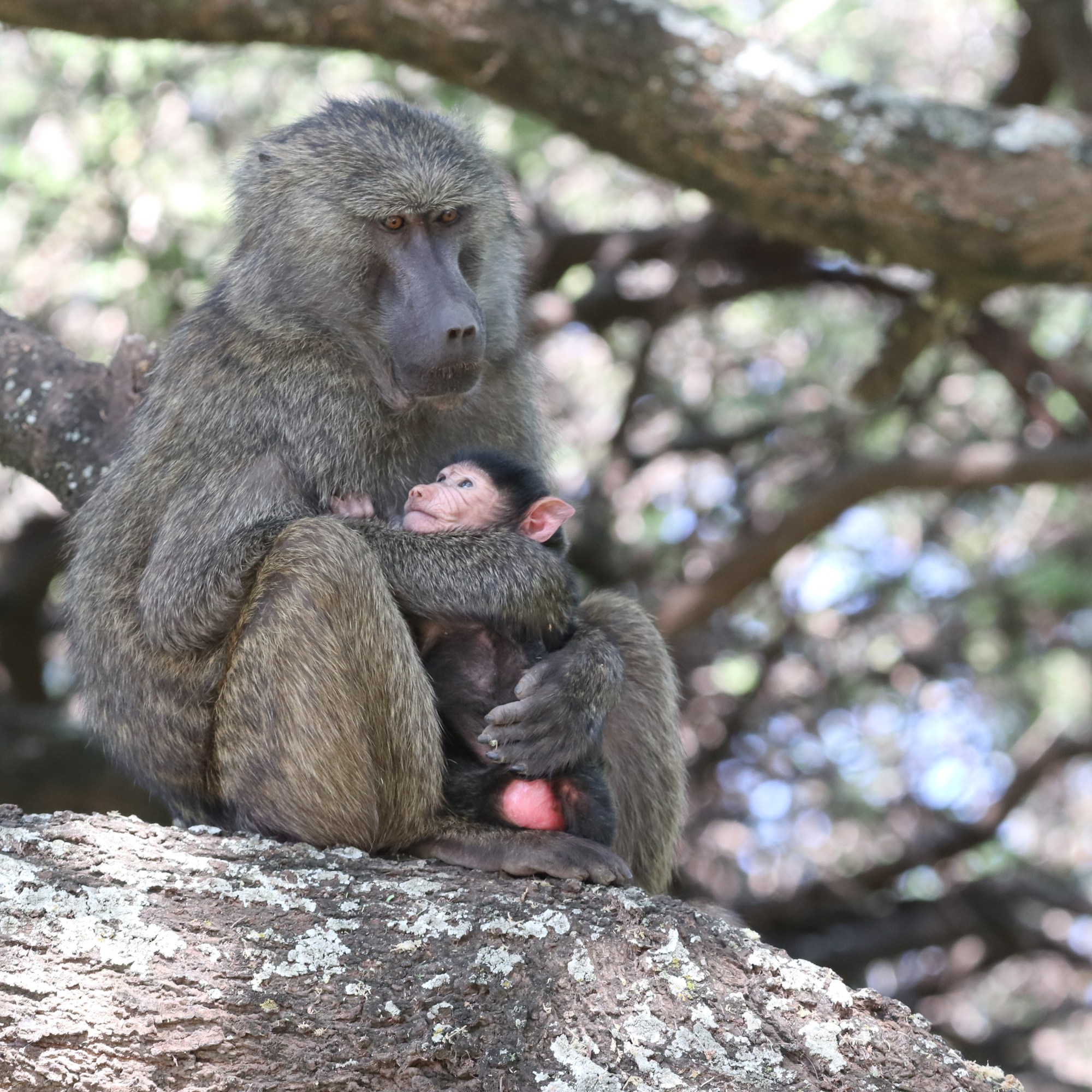 Just a few minutes in, a large troupe of baboons appeared on the roadside, their playful antics bringing a smile to my face. Some sat grooming each other, others chased one another across the branches, and a few young ones clung tightly to their mothers. Watching them felt like a fitting start to our last safari. We also saw a lone blue monkey in the branches of the acacia tree delicately picking flowers and fruits to eat all the while holding the branches with it’s long tail.