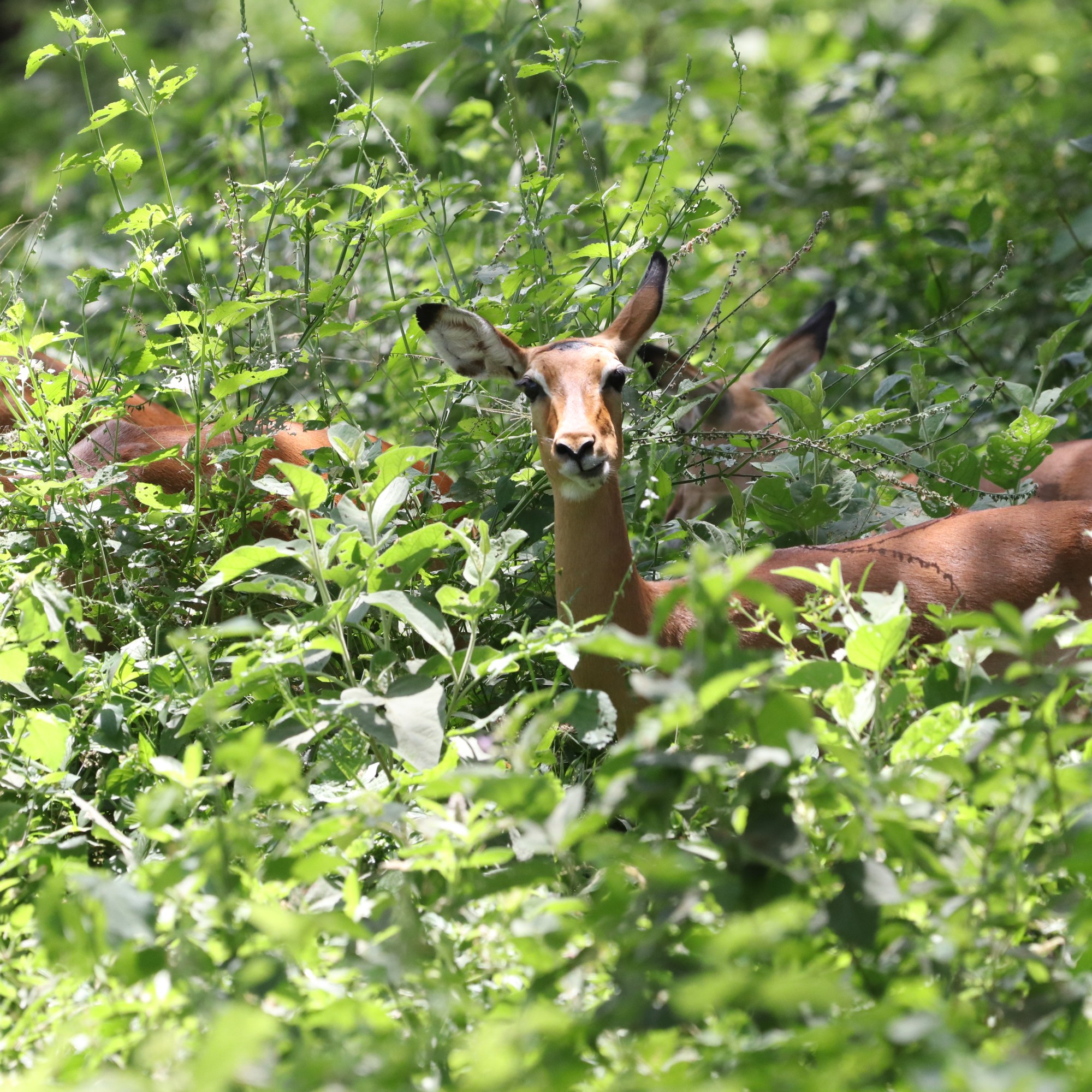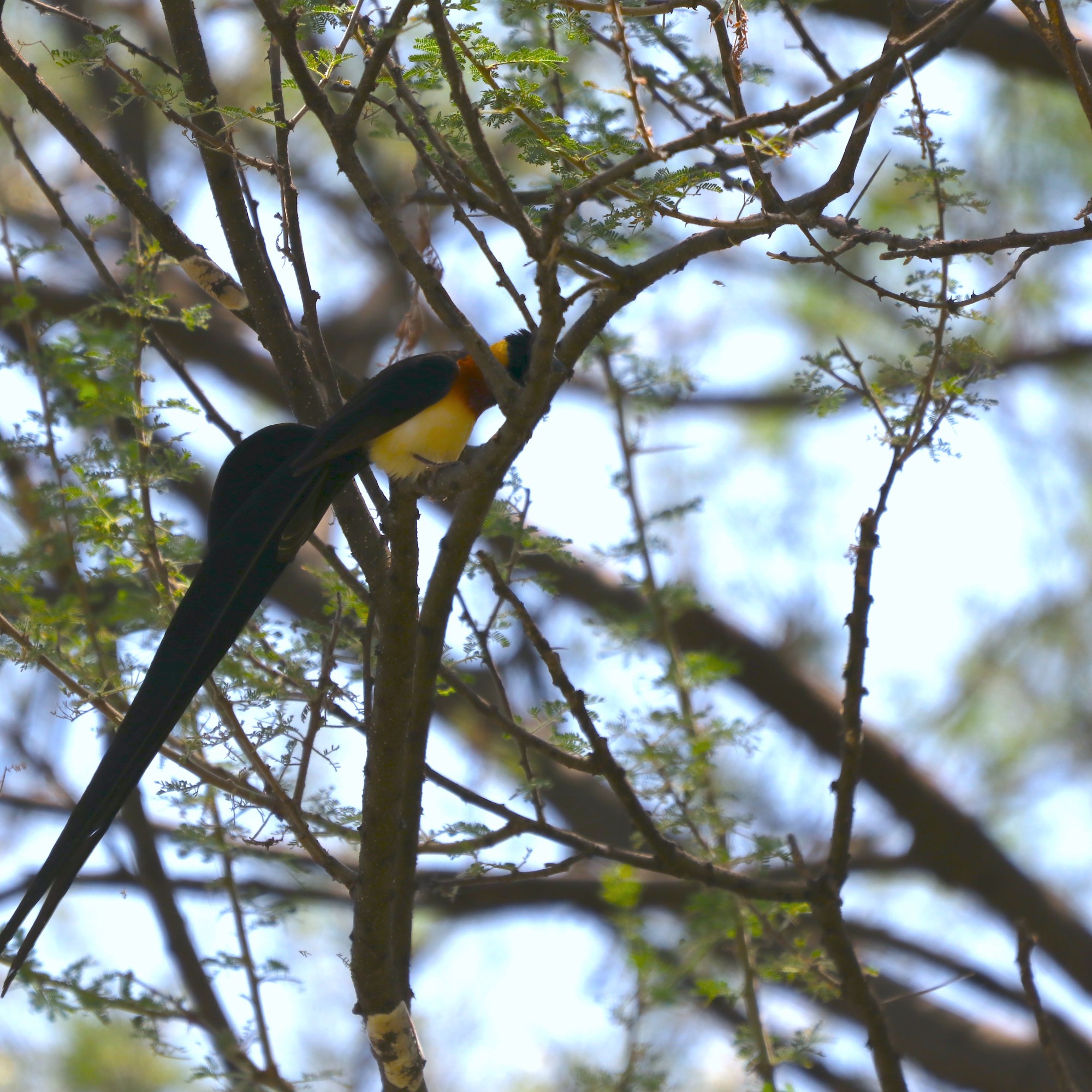 Moving along, we stumbled upon a lone bull elephant scratching itself against a tree with such determination that, for a moment, we thought the poor tree might surrender and topple over. Not far from this enthusiastic back-scratcher, a grey-backed fiscal flew past, seemingly posing for us, while a group of impalas grazed in the nearby thicket, blissfully unaware of their audience. Just when we thought Manyara had shown us all its treasures, it pulled out one last surprise—an Exclamatory Paradise Whydah! A good spot by my friend. With its striking orange chest and a tail that refused to quit, this bird practically demanded a photo session, and we were definitely not going to refuse it.