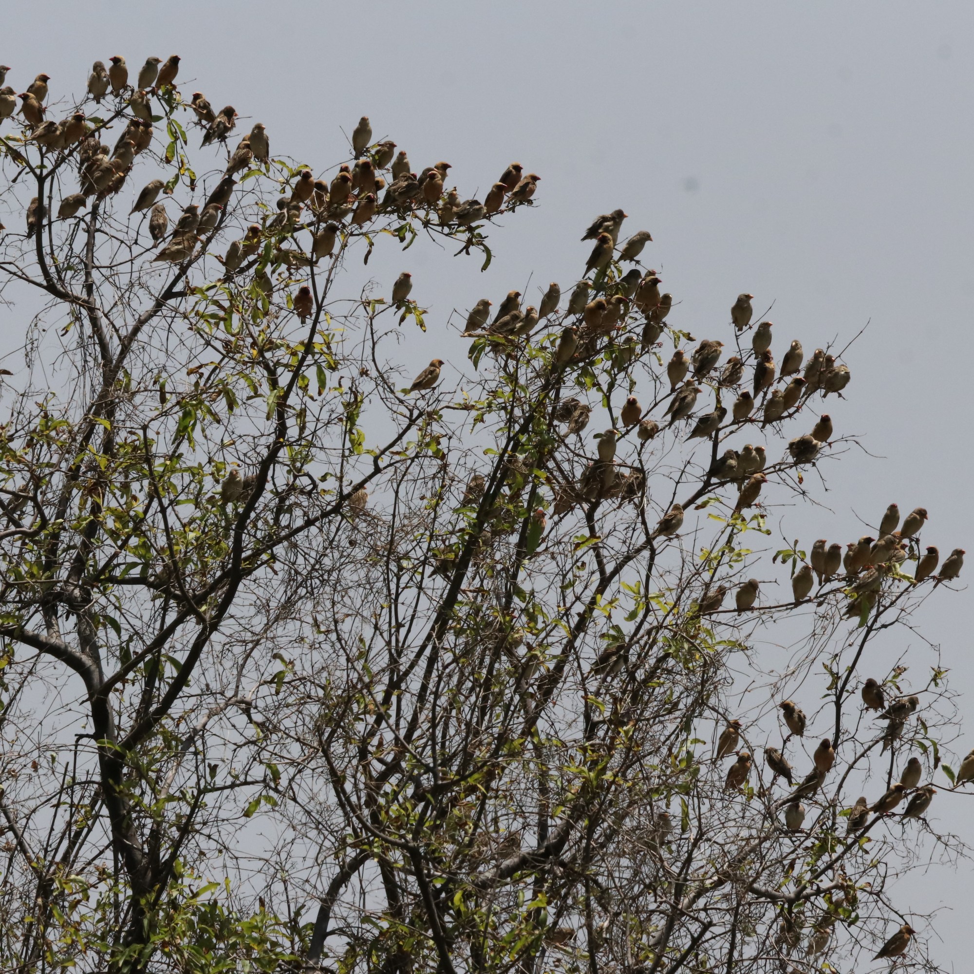 As we continued, we came across another grey-backed kingfisher, and in the distance, an odd-looking tree caught our attention. Something about it seemed… off. A closer look through the 600mm lens revealed the mystery—a massive flock of weaver birds clustered on one side, turning the tree into an asymmetrical, feathery masterpiece. Safety in numbers, I suppose.